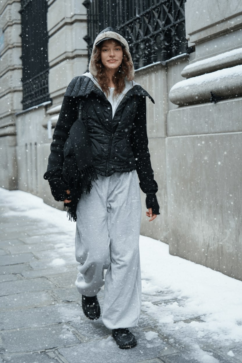 Add realistic snow to this photo and make the whole picture a cold and romantic winter scene, and ensure the adjustment merges in perfectly with the original image.